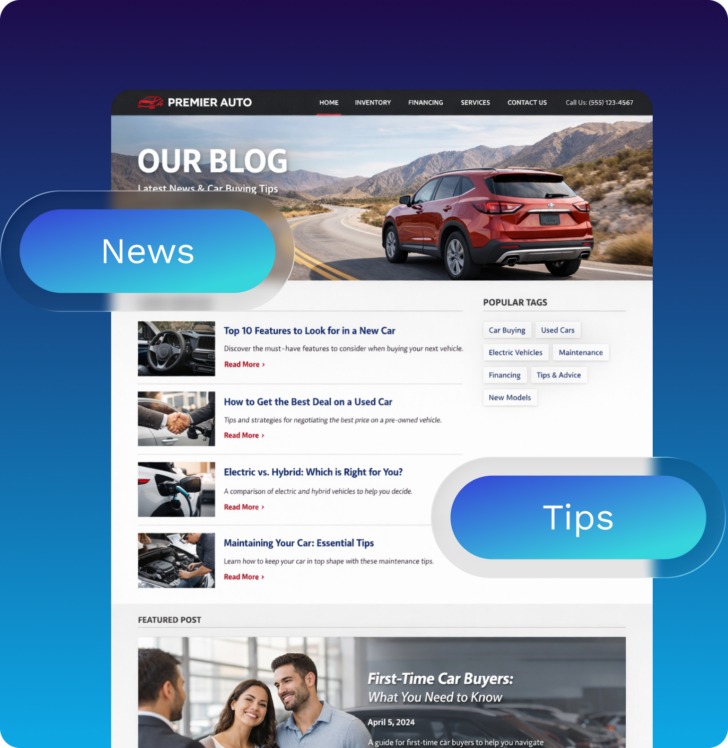 Beyond inventory, a blog or news section is a powerful tool for keeping your site fresh. Regularly publishing helpful articles builds trust, showcases your expertise, and increases search visibility through new indexed pages.